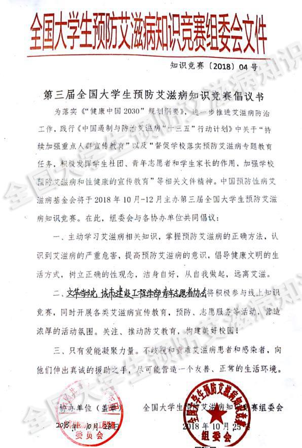 > 文华学院城市建设工程学部青年志愿者协会