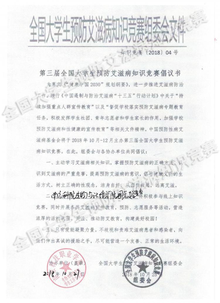 > 南京科技职业学院生物与环境学院团总支学生会