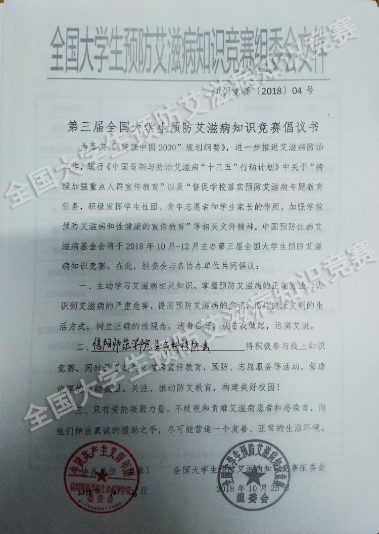 > 信阳师范学院生命科技协会